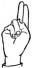 На ћирилици написано ЈАБУКА МЕЧАНИН састоји се из 13 слова [?]. Исписано ћириличном једноручном азбуком за глувонеме: